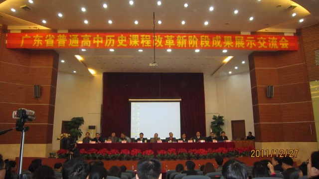 2011年12月26日至28日,由广东省教育厅教研室主办的广东省普通高中历史课程改革新阶段成果展示交流会在惠州举行,我省各地有近400人参加了会议。会议在惠州一中报告厅举行。