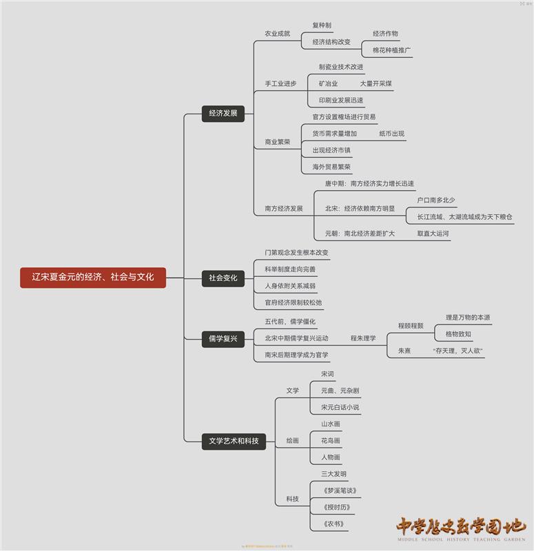 第11课 辽宋夏金元的经济、社会与文化【思维导图】
