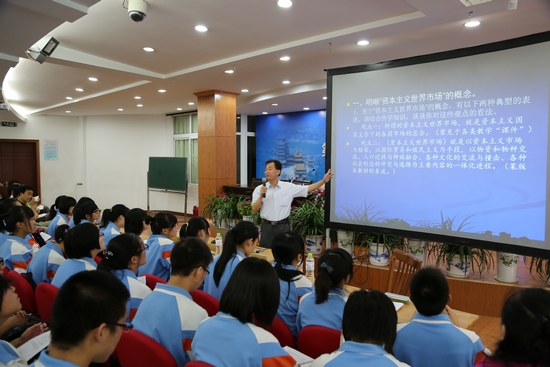 下午,湖北省宜昌市第六中学特级教师王英姿执教初中“明清文化”一课,王老师组织课堂不瘟不火,妙语连珠,对师生共同探讨的问题不急于下定论,追求学生知识的生成。江苏省镇江市第一中学特级教师王生执教高中“资本主义世界市场的形成和发展”一课。王老师课堂设计匠心独运,史料详实,手法艺术,师生探索思想深刻。两位老师通过课堂展示了他们先进的教学理念,呈现出独特的教学风格。