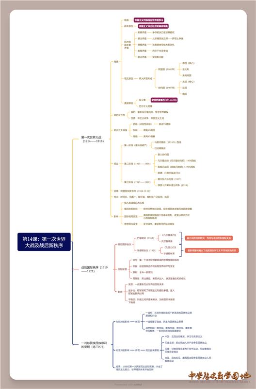 思维导图:第14课 第一次世界大战及战后新秩序