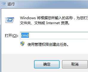 2、在弹出来框中输入:CMD后按确定。