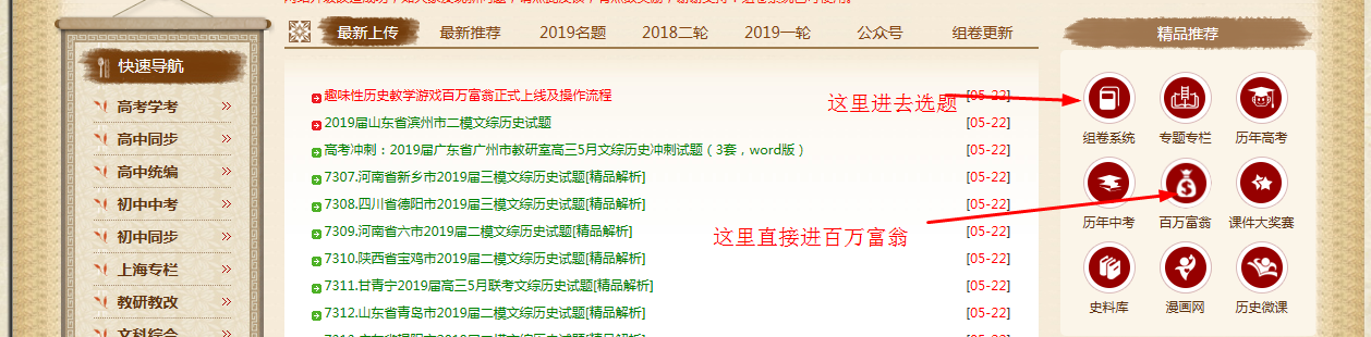 第一步:进入组卷系统(升级后网站已经实现了一键登陆功能,只要主网站登陆了,点箭头所指按钮组卷系统也自动登陆了。)