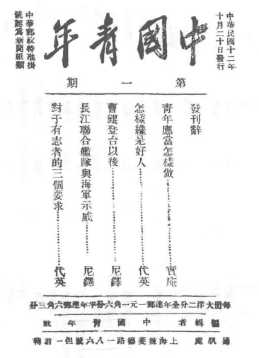 下图是我党在大革命期间出版的期刊《中国青年》的创刊号。