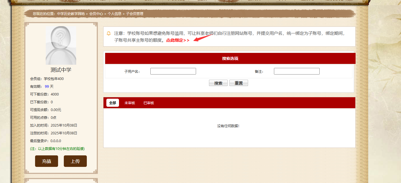3、子用户检查使用学校账号的下载记录