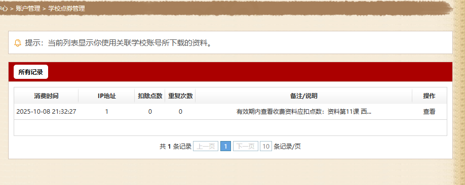 (2)查看自己使用学校账号的下载记录。