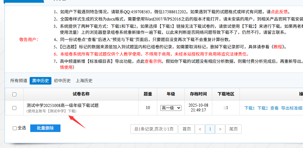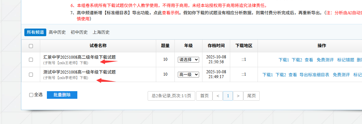 (2)子账号看到的下载记录
