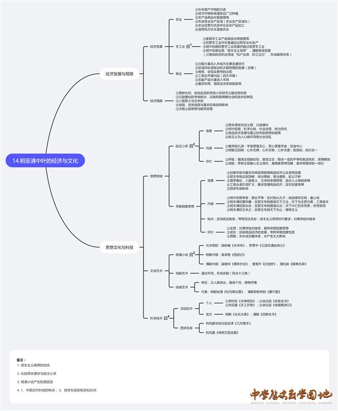第14课 明至清中叶的经济与文化【思维导图】